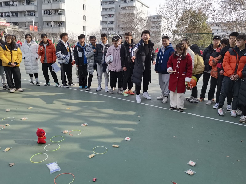 排球场中,“碰碰虎”“跳跳虎”“摇摇虎”三个项目的比赛紧张有趣,以专业大类为单位,进行着踩气球、立定跳远和跳绳的比赛。比赛中,同学们不仅体验着竞赛的趣味性,同时又加强了体育锻炼,更从中感受到了迎新年的热闹。看似简单普通的三项娱乐性比赛,却足以给同学们带去欢笑,让同学们沉浸在丰富多彩的校园文化当中。